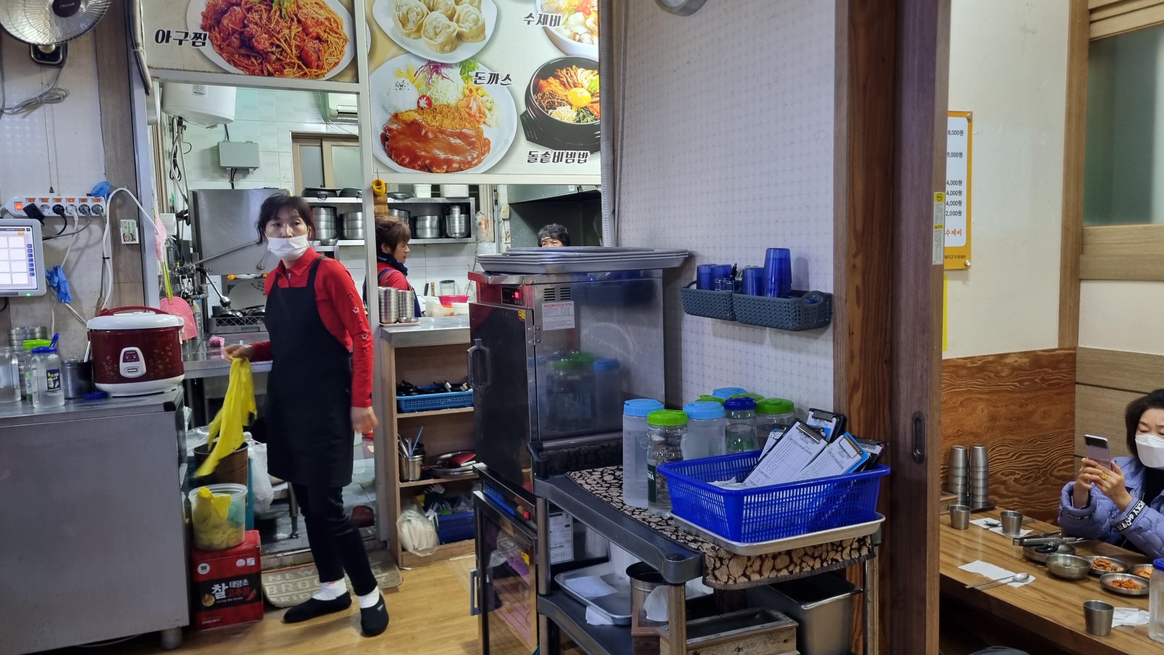 식당 내부는 위 사진과 같이 장사를 오래하신 듯한 비주얼이지만 주방이 열려있어 위생에는 자신있다는 신념이 보이는 듯한 분위기였습니다. 애매한 시간이었지만 식사하시는 분들이 꽤 있었고, 직원분들도 친절하셨습니다. 요즘 가격들이 다 올라 칼국수도 이젠 서민음식이라 불러야 하나 아리송하긴 하지만, 뭐든 안 오른 게 없으니 같이 이해하고 견뎌야 하는 시기인 것 같습니다.