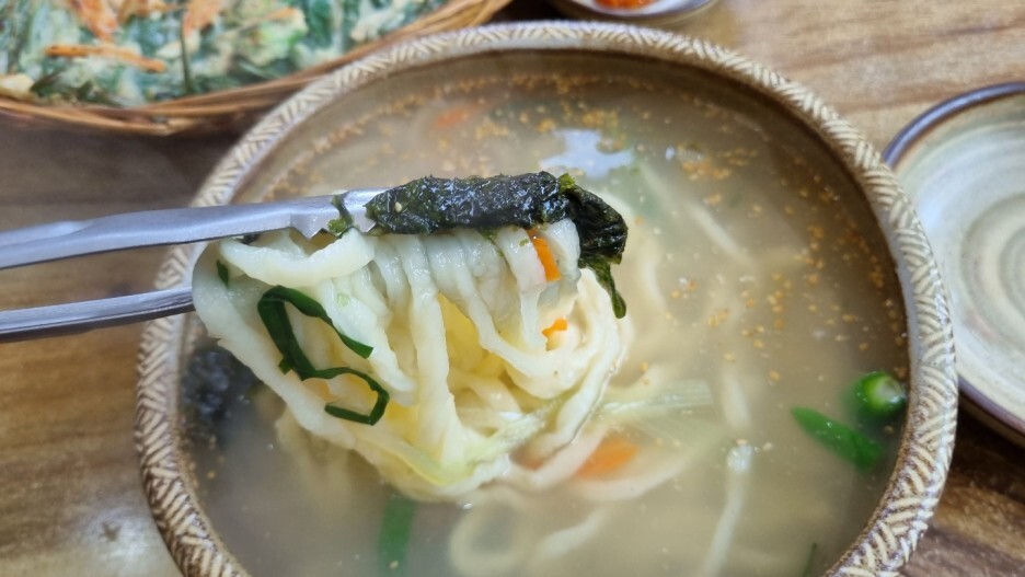 칼국수와 파전. 거기에 동동주. 무슨 말이 더 필요하겠습니까. 그저 마음까지 넉넉해지는 조합입니다.
