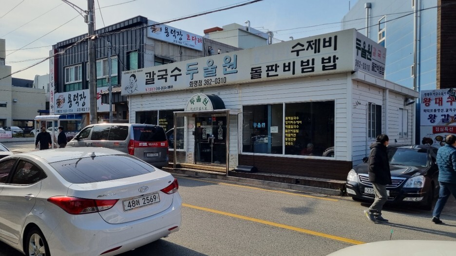 화명동에는 맛집이 많은 만큼 칼국수집도 많이 있습니다. 그 중 오늘 제가 찾아간 곳은 장미공원 바로 옆에 있어서 산책하다 들리기도 쉽고, 빛바랜 간판이 오래된 업력을 자랑하는 듯한 두울원입니다.