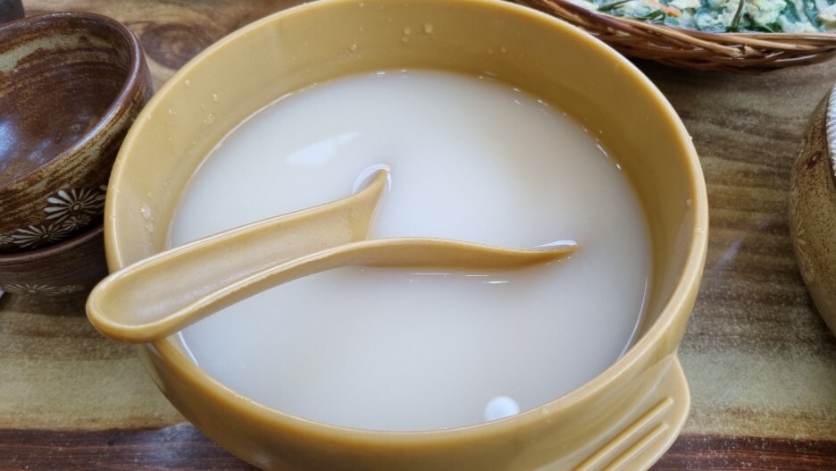 자. 파전엔 동동주가 빠질 수 없겠죠? 이날 초밥을 먹으려다가 냄새에 이끌려 파전을 시켰고, 파전을 시켰으니 동동주를 마셨네요. 그것도 대낮부터^^; 이런 여유를 즐길 수 있을 때 누려야지! 하면서 한잔하는데 역시 낮술은 언제든 좋습니다.